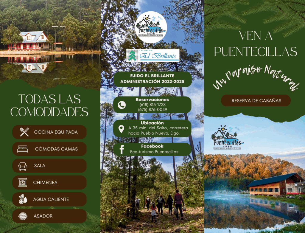 Puentecillas, la segunda acción de protección del bosque y diversificación de actividades redituables del mismo, está situado al sur oeste, siguiendo hasta el kilómetro 22 de la carretera de El Salto a Pueblo Nuevo, antigua cabecera municipal.